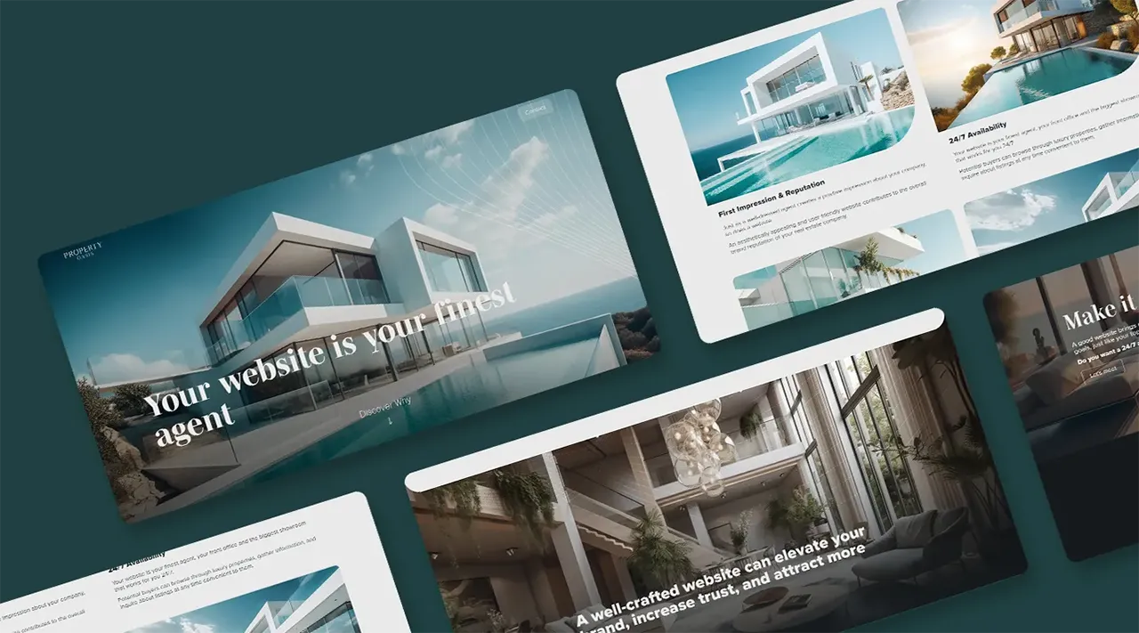 Property Oasis was conceived as a showcase project: a fully realised luxury real estate brand built from the ground up to demonstrate what Marketing Orchestra can deliver for clients in the property sector. Rather than a simple design exercise, it is a complete brand system, including a live website, that prospective real estate clients can experience directly.